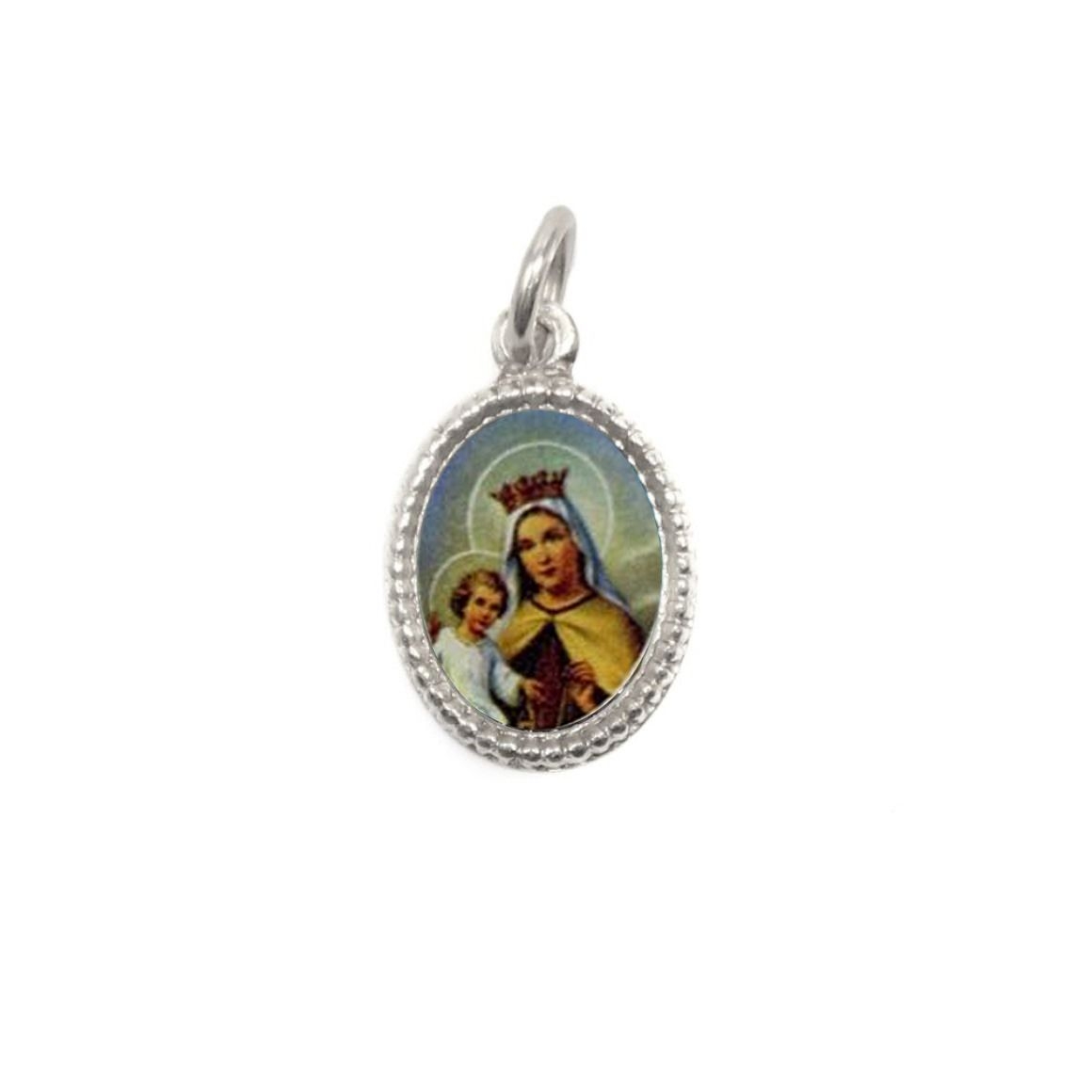 *Medalha de Alumínio Oval Prata c/ 20un. N. Sra. Do Carmo - 1,5x1cm.