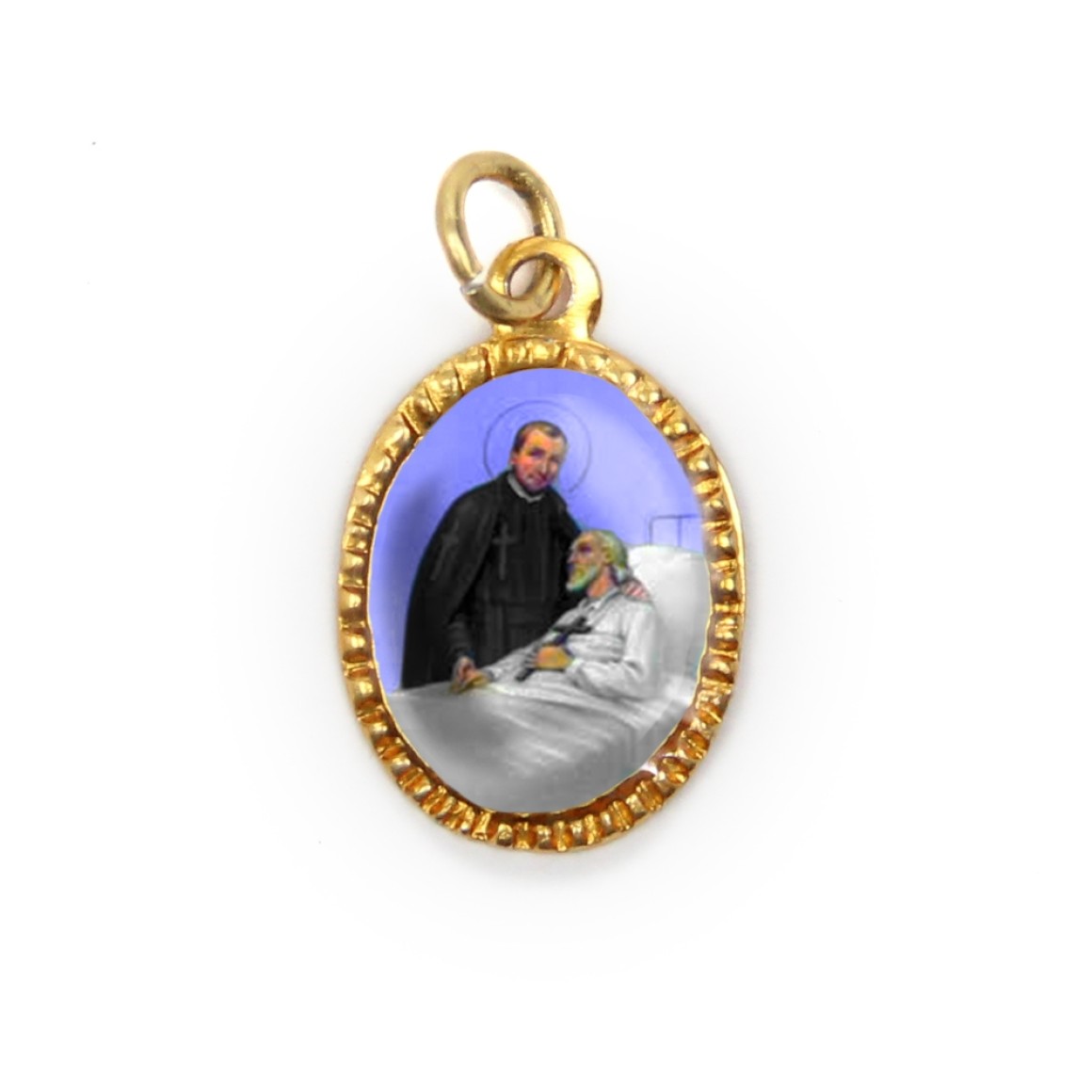 MD103233P10 - Medalha de Alumínio Oval Dourada c/ 10un. São Camilo de Lellis - 2X1,3cm