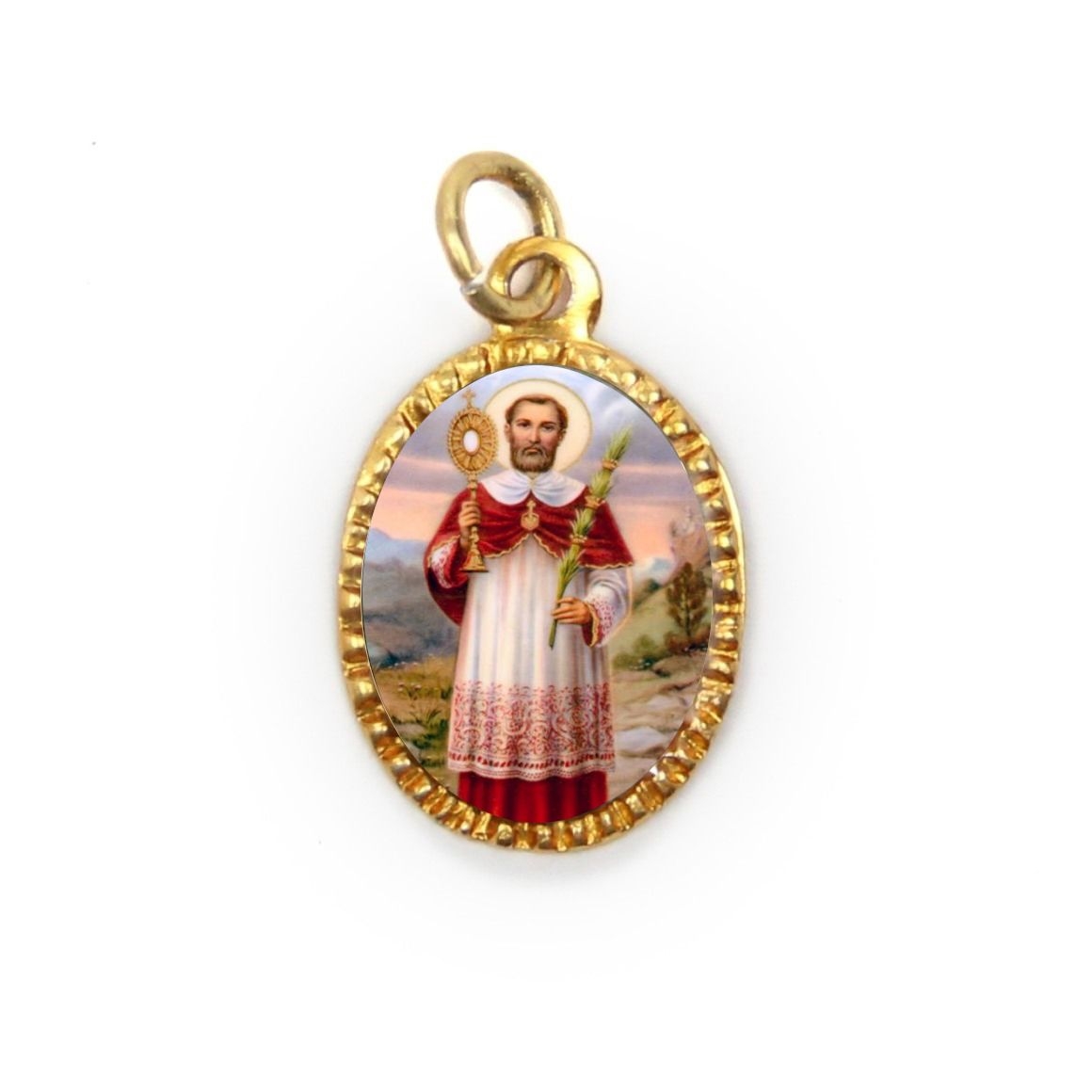 - MD103345P10 - Medalha de Alumínio Oval Grande Dourada c/ 10un. São Raimundo Nonato - 2x1,3cm