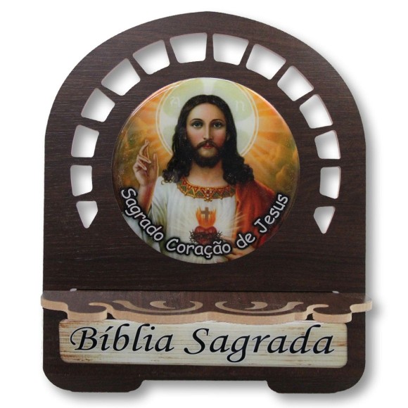 *Porta Bíblia Sagrado Coração de Jesus MDF Resinado - 30,5x25,5cm.