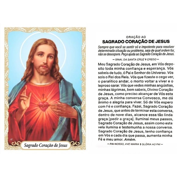 *Oração Sagrado Coração de Jesus c/ 100un. - 9,5x6,5cm.