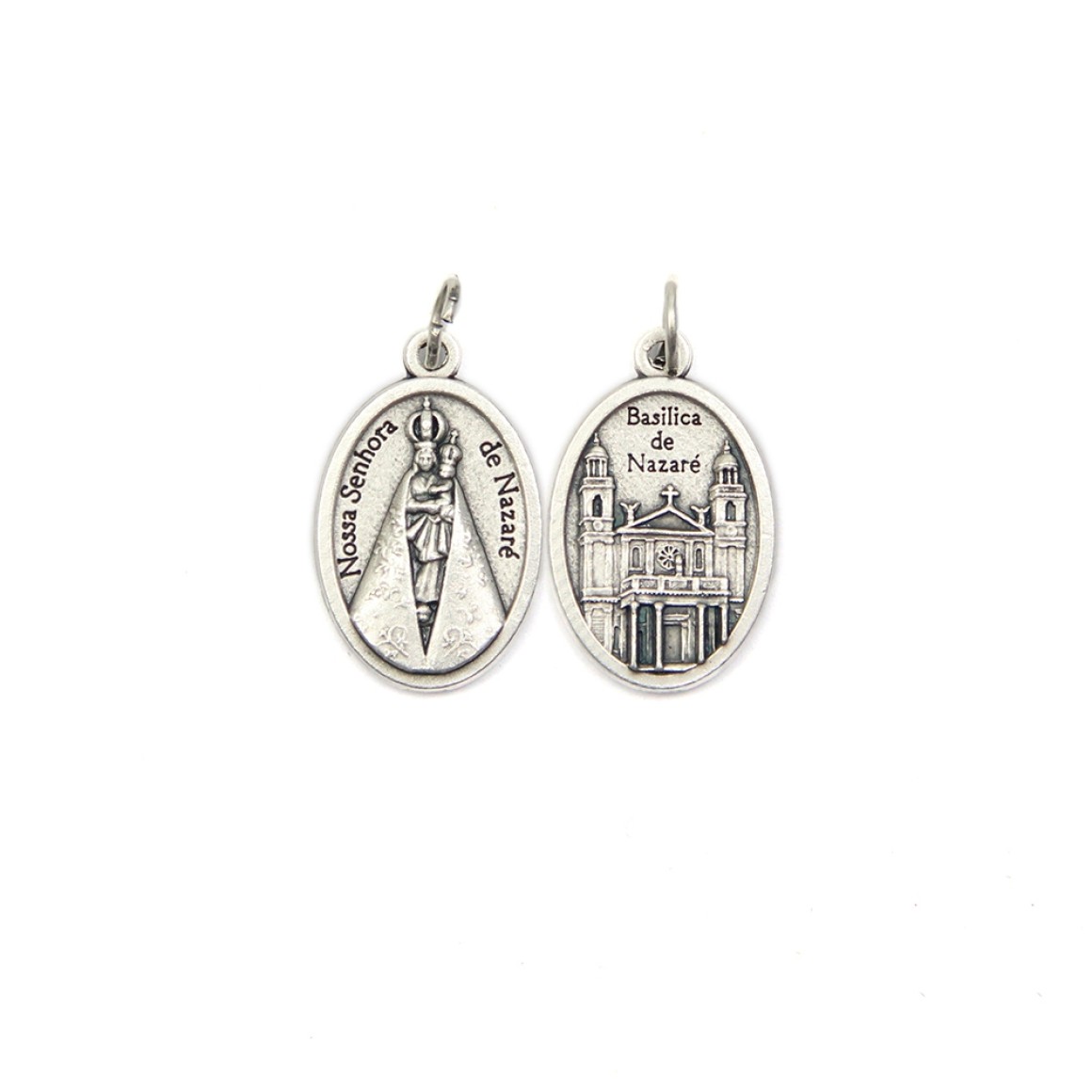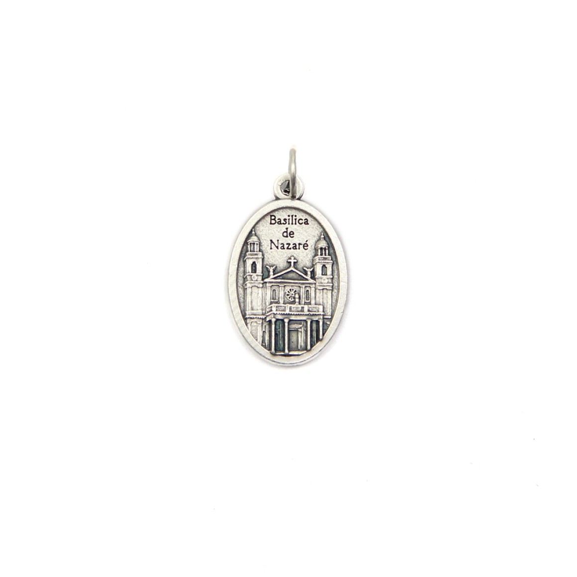 *Medalha N. Sra. De Nazaré e Basílica de Nazaré Italiana Oval Dupla Prateada c/ 2un. - 2,5x1,7cm