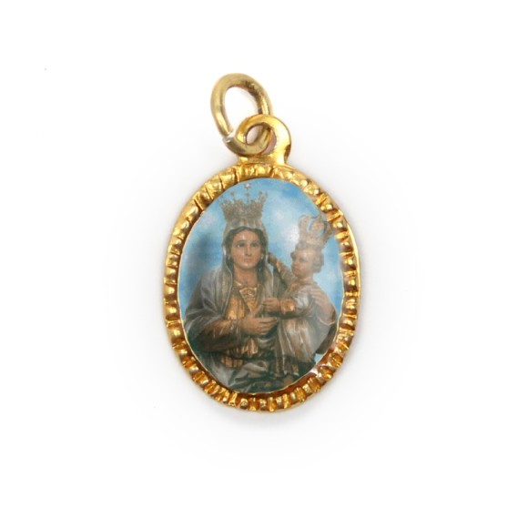 *Medalha de AlumínioOval Dourada c/ 10un. N. Sra. Achiropita - 2X1,3cm.