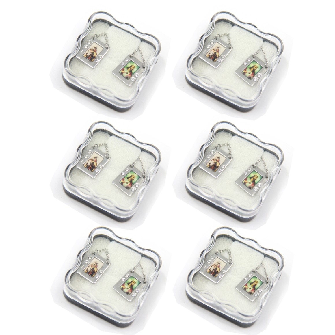 ES43009P6 - Escapulário N. Sra. Do Carmo Aço Inox c/ Strass c/ 6un. - 61,7x1,3cm (R087)