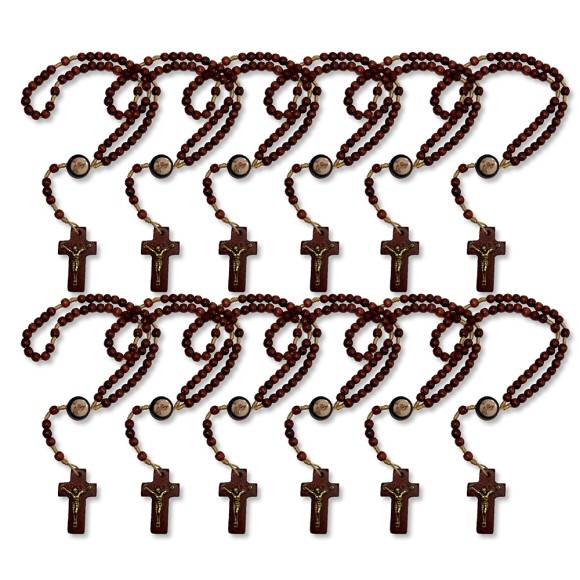 TE941014P12 - Terço N. Sra. do Carmo Madeira c/ 12un. - 24cm