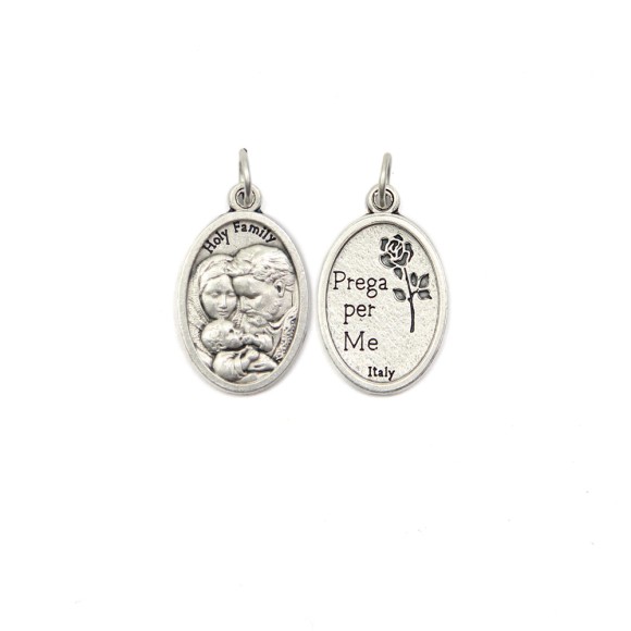 2. MD1180300P2 - Medalha Sagrada Família Italiana Oval Prateada c/ 2un. - 2,5x1,7cm
