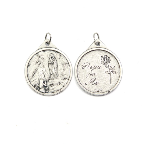 MD1190830 - Medalha N. Sra. De Lourdes Italiana Redonda Prateada - 3,8x3cm