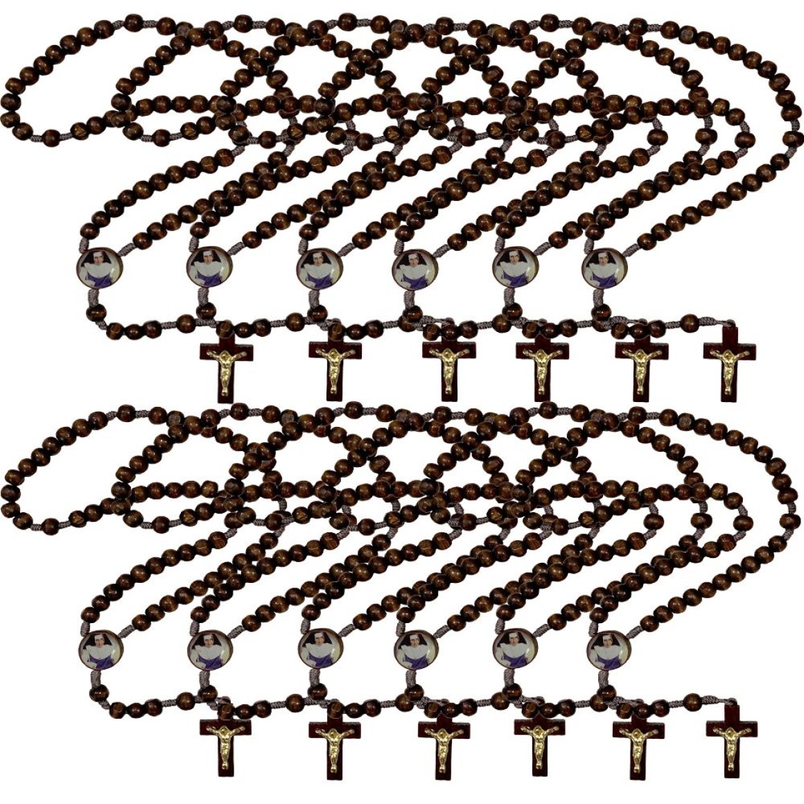 2. TE940330P12 - Terço Santa Dulce dos Pobres (Irmã Dulce) Madeira c/ 12un. - 37cm