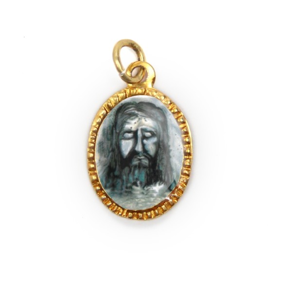 MD103219P10 - Medalha de Alumínio Oval Dourada c/ 10un. Sagrada Face - 2X1,3cm
