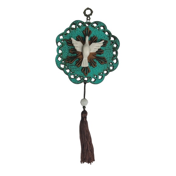 *Adorno MDF com pintura em pátina e Divino Espírito Santo em resina.