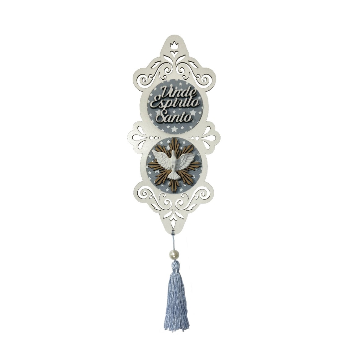 *Adorno Divino Espírito Santo MDF Branco - 32x10,2cm.