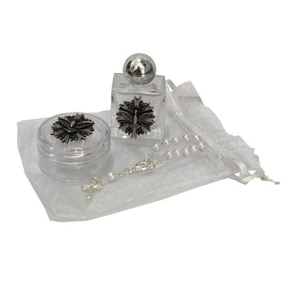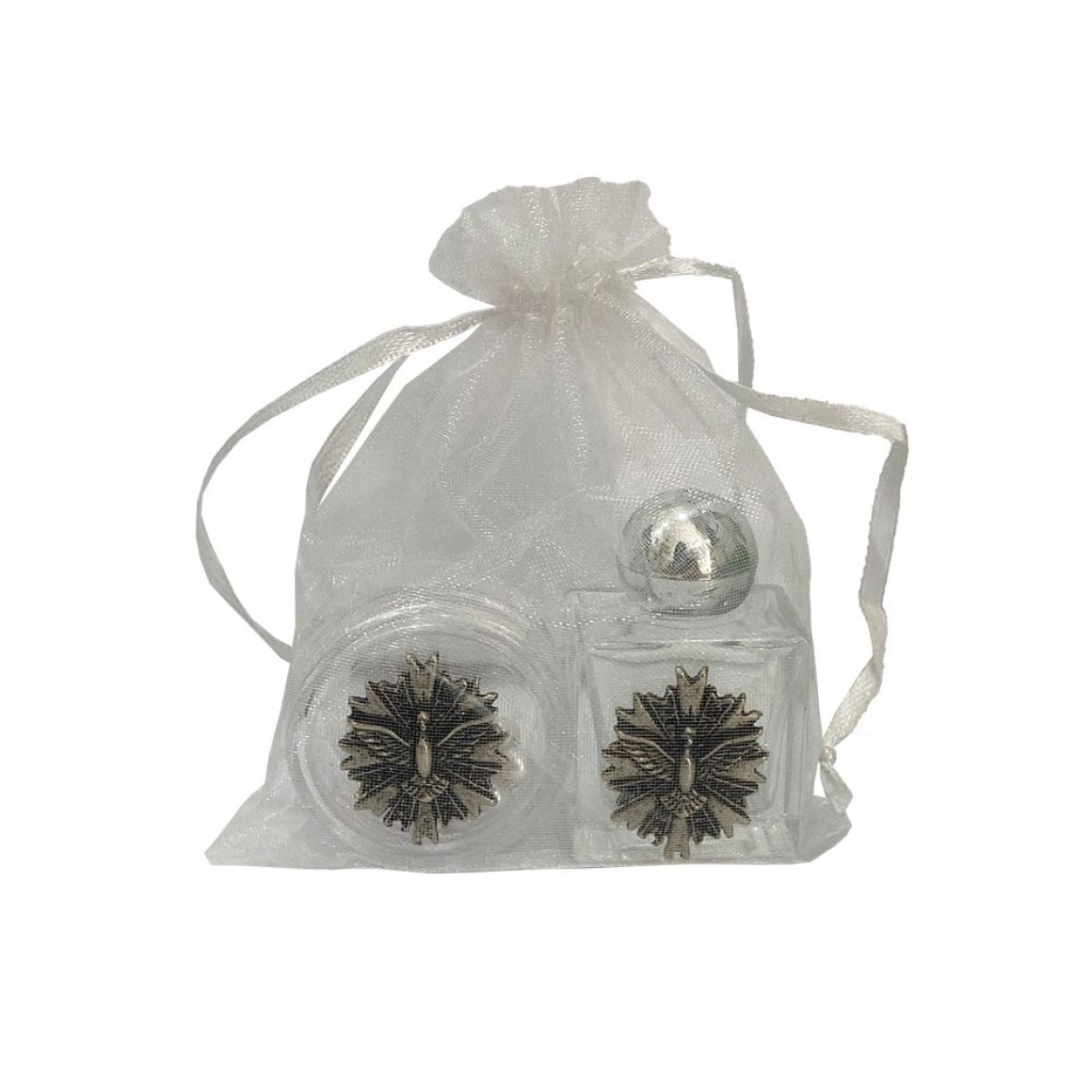 KT750300 - Kit Divino Espírito Santo c/ Caixinha, Dezena e Garrafa de Água Benta - 10ml
