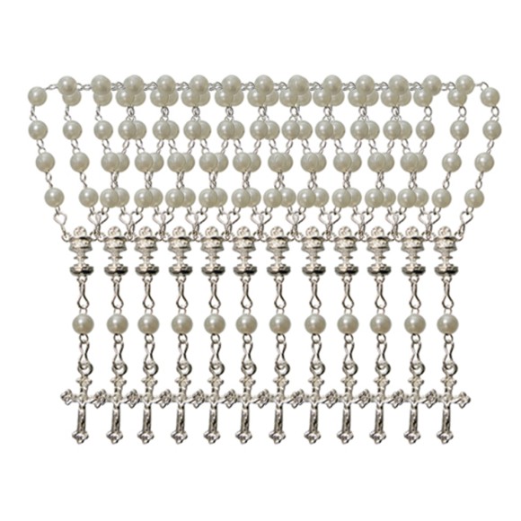 DZ112001P12 - Dezena Primeira Eucaristia Pérola Branca c/ 12un. (Mini Terço) - 9,5x1cm