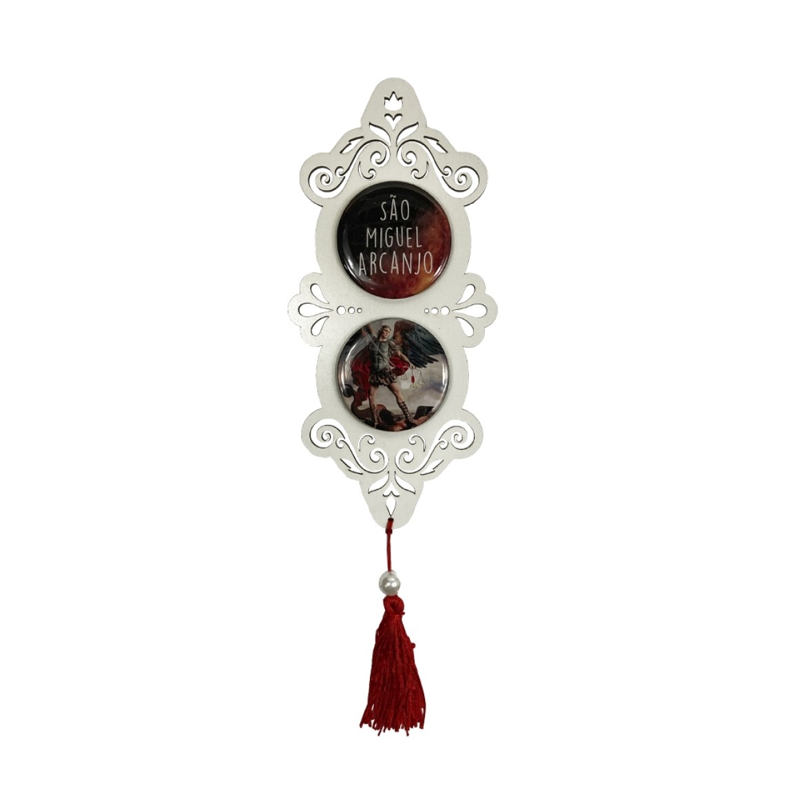 *Adorno São Miguel Arcanjo MDF Branco Resinado - 32x10,2cm.