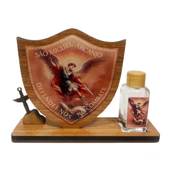 *Adorno de Mesa Escudo São Miguel Arcanjo c/ Porta Água Benta - 12x16,5cm.