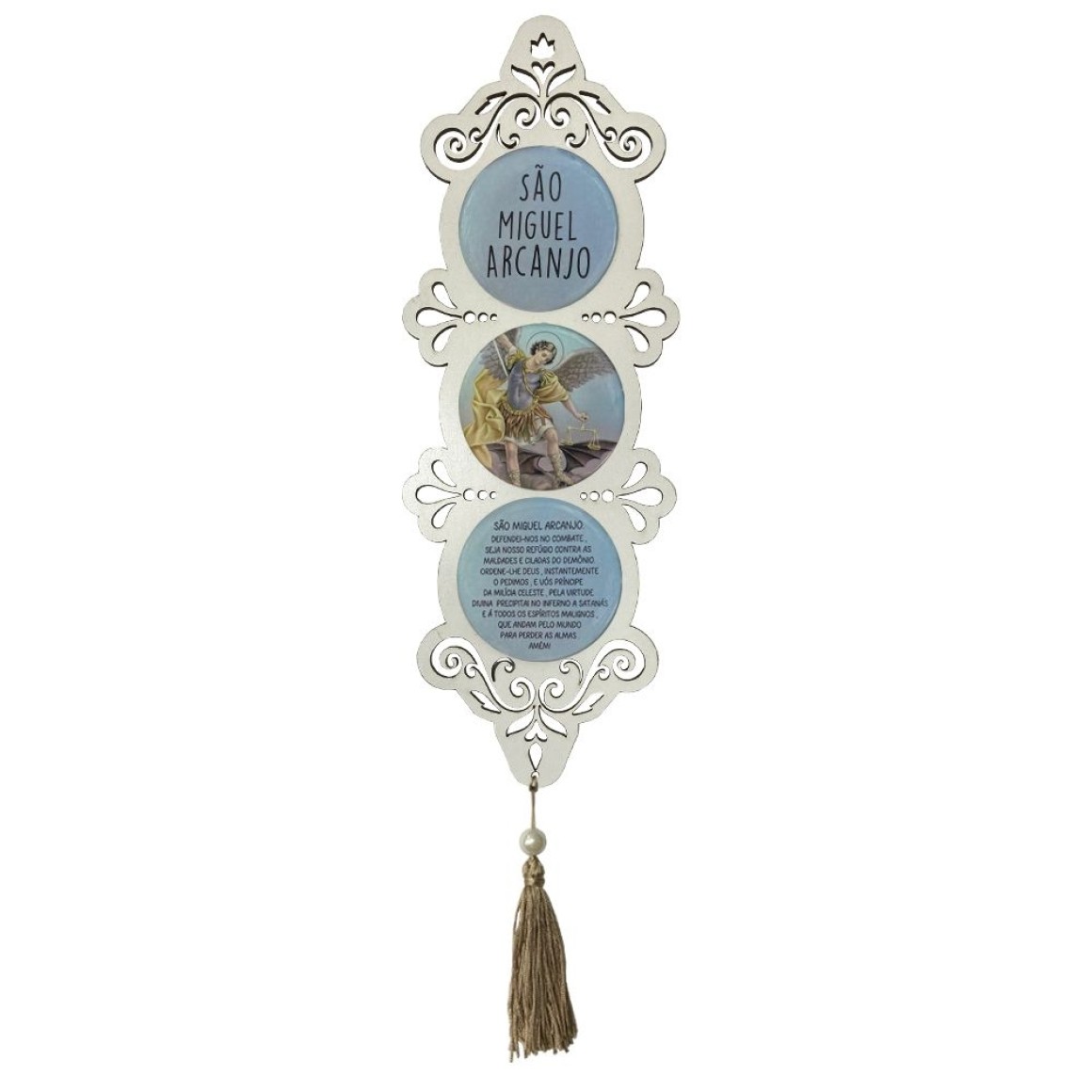 *Adorno São Miguel Arcanjo MDF Branco Resinado - 40x10,5cm.