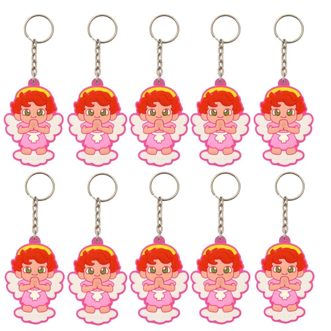CH50803P10 - Chaveiro Santo Anjo Rosa Emborrachado c/ 10un. - 11x4cm
