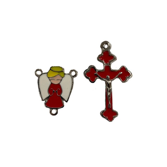 KT720106 - Kit Cruz e Entremeio Anjinho Vermelho Níquel