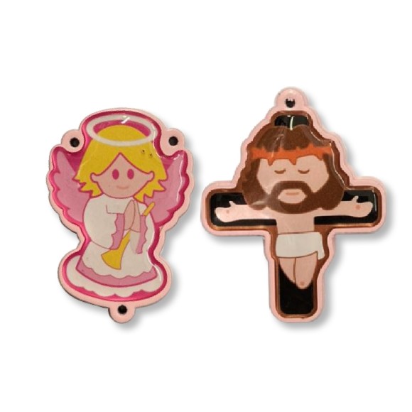 *Kit contendo 1un. Cruz e 1un. Entremeio Anjinho Rosa Madeira Resinada.