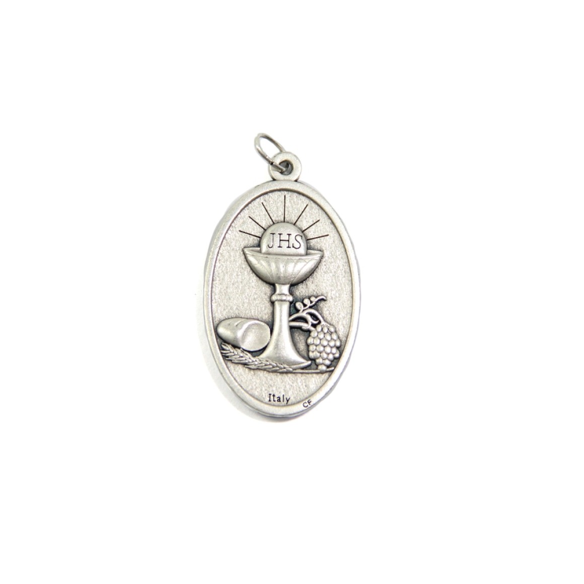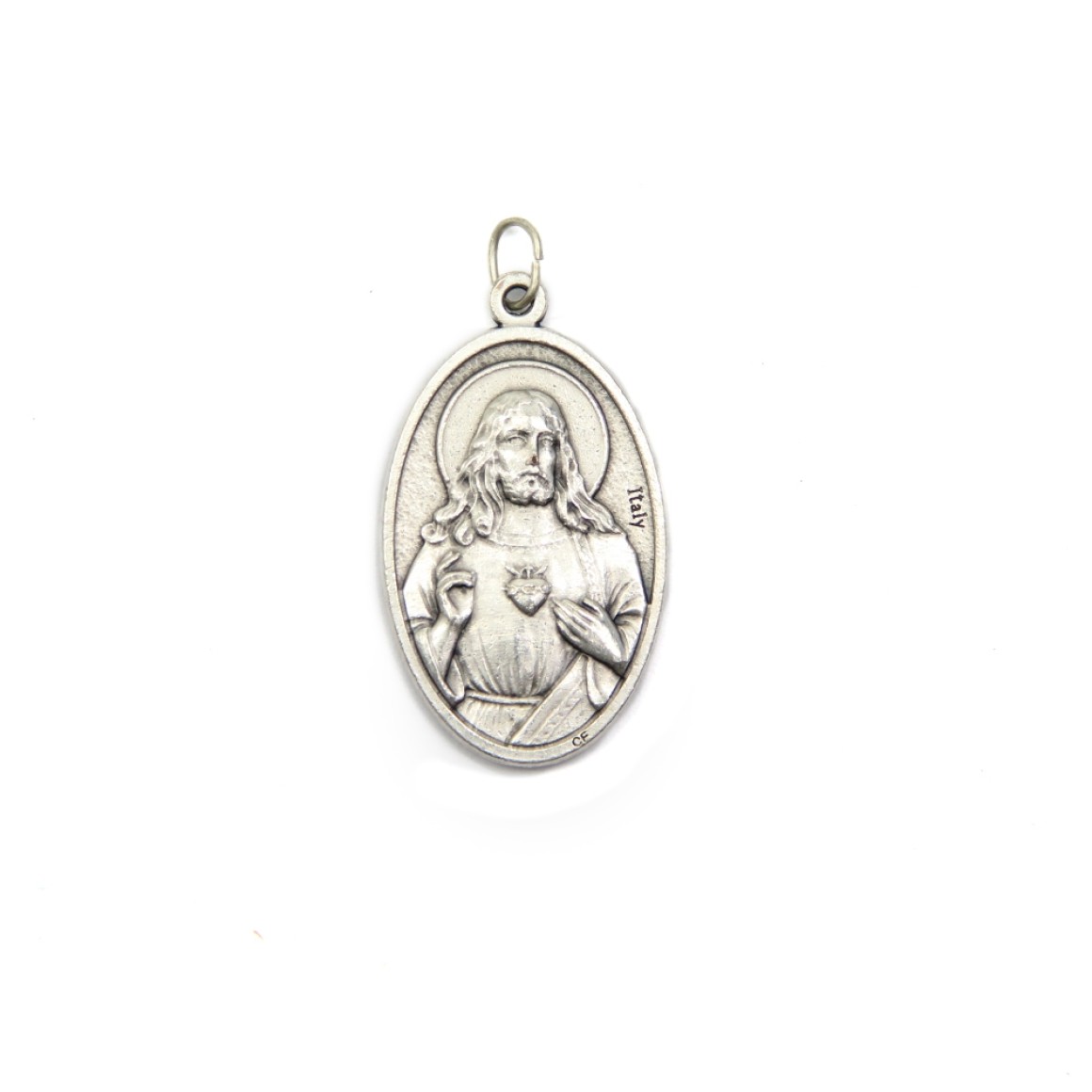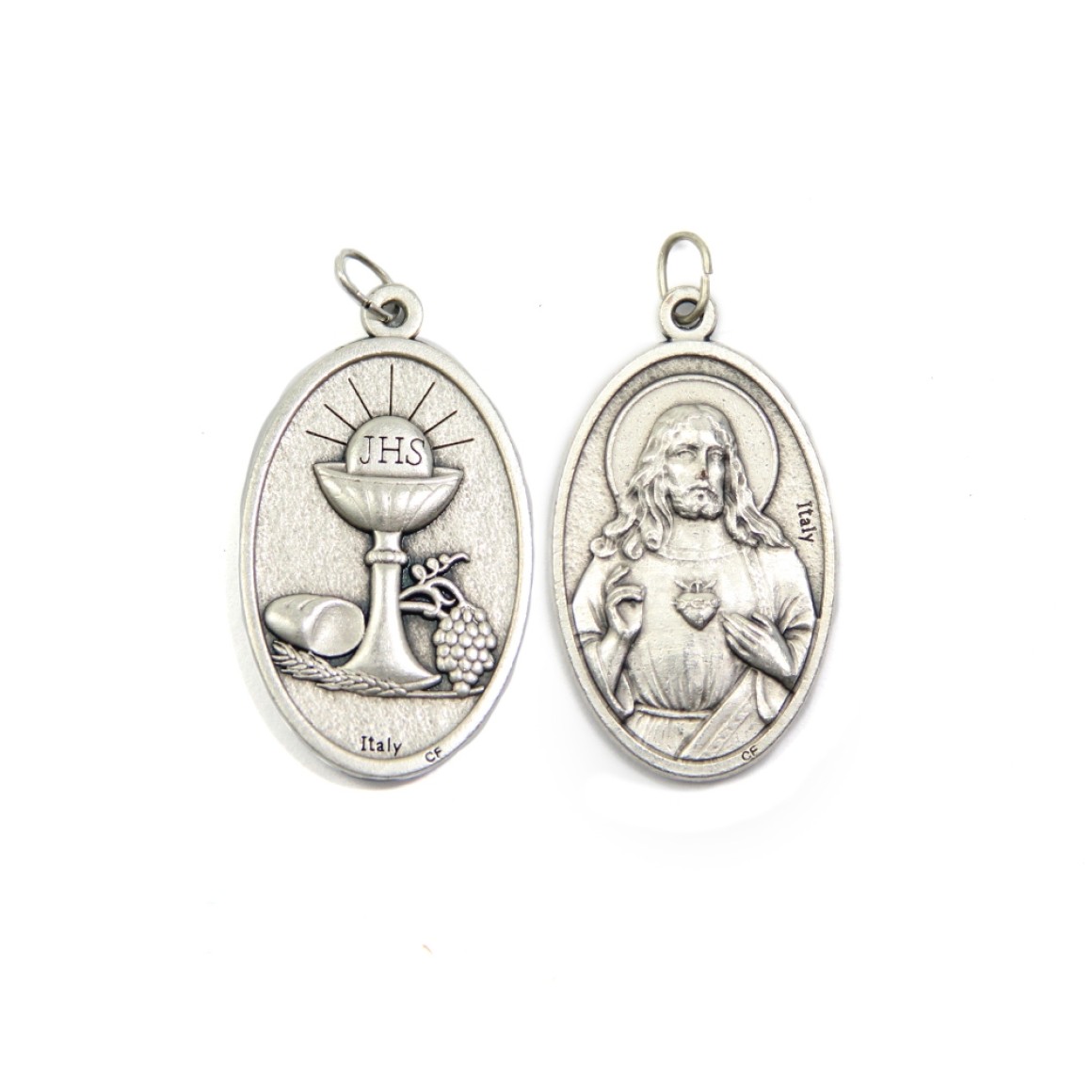 *Medalha Primeira Eucaristia Sagrado Coração de Jesus Italiana Oval Dupla - 4,5x2,6cm.