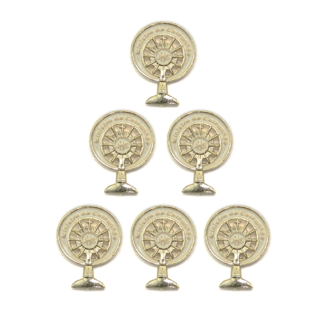 BO112020P6 - Botton Ministro da Comunhão Ostensório Dourado c/ 6un. - 2x1cm