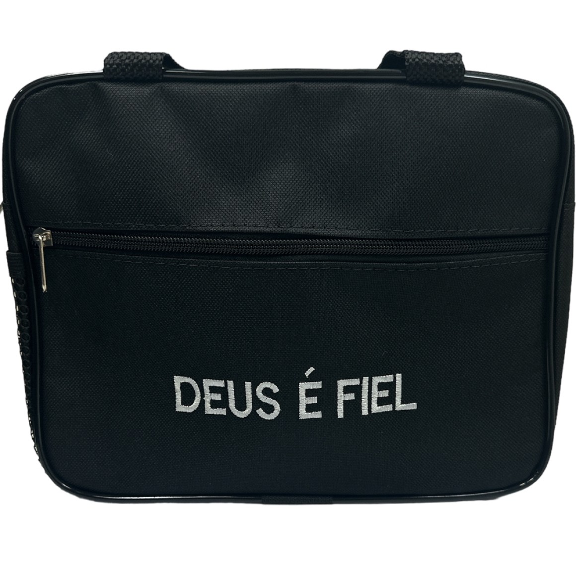 *Bolsa Porta Bíblia Deus é Fiel Preta - 25x20cm.