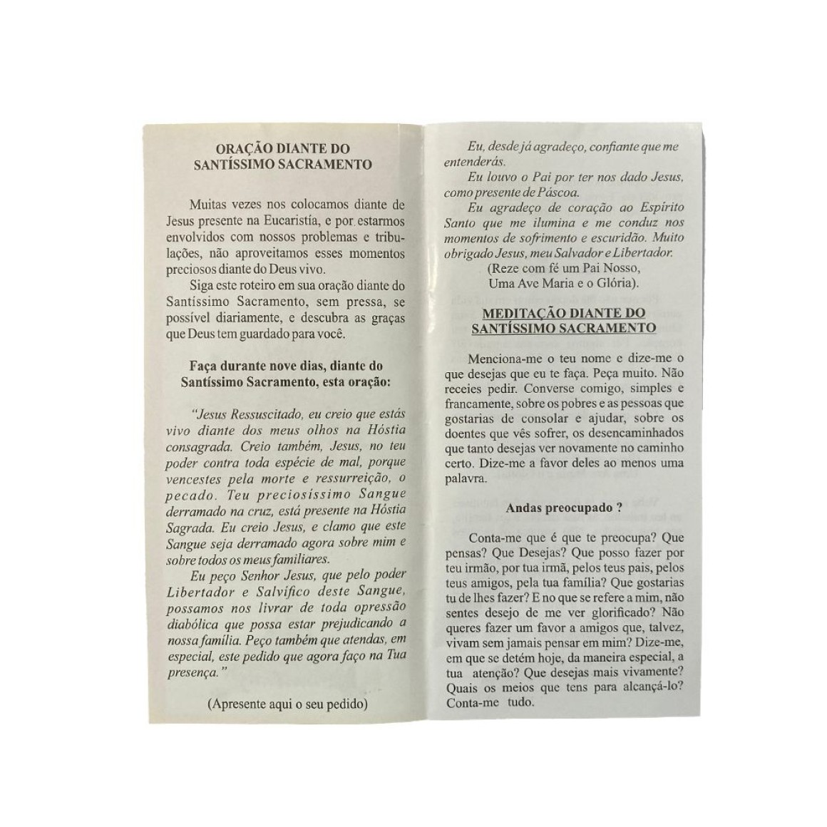 *Oração de adoração diante do Santíssimo Sacramento c/ 2un.- 15x7,5cm.