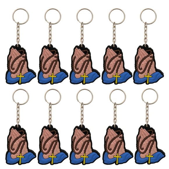 CH50860P10 - Chaveiro Mãos Rezando Emborrachado c/ 10un. - 11x4cm