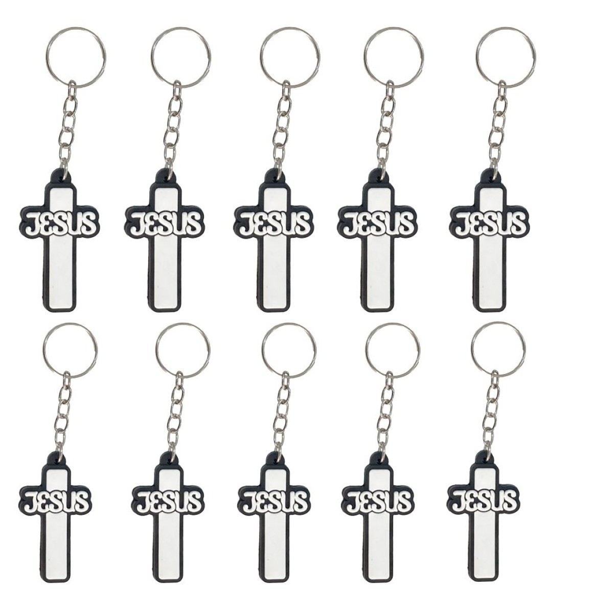2. CH50866P10 - Chaveiro Crucifixo Emborrachado c/ 10un. - 10,5x3,5cm