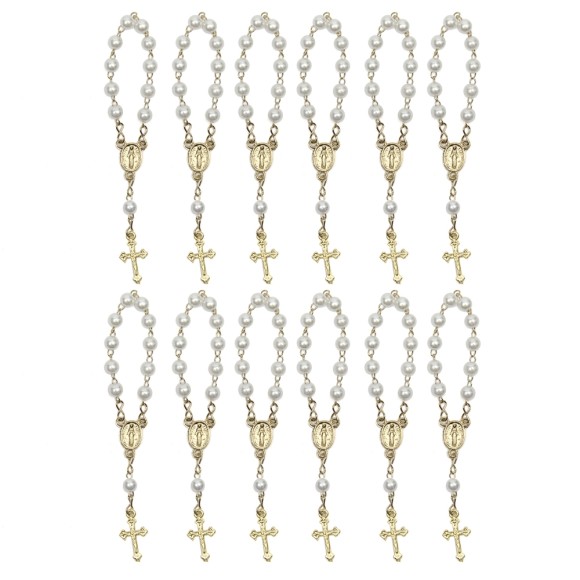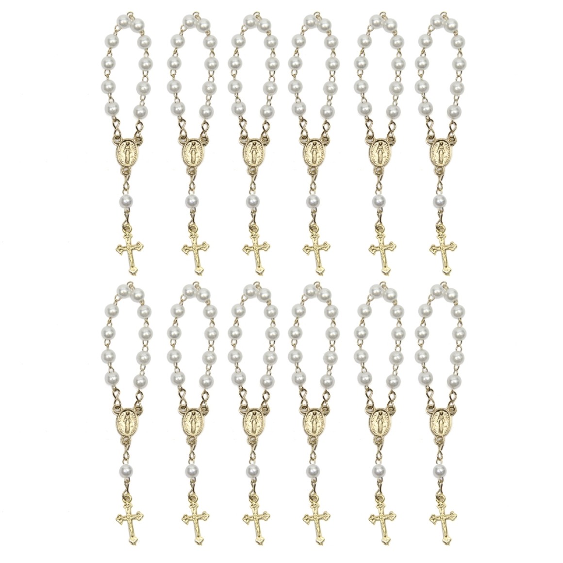 DZ1070008P12 - Dezena Dourada de Pérola Branca c/12un. (Mini Terço) - 9,5x1cm