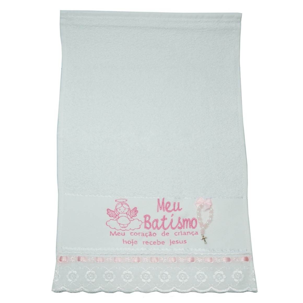 *Toalha Batismo Rosa c/ Dezena - 45x31cm.
