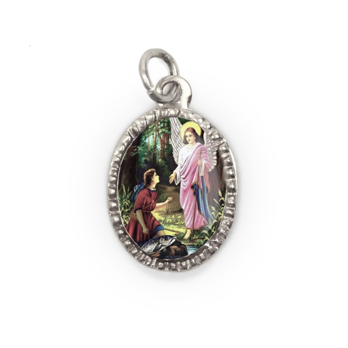 2. MD103910P10 - Medalha de Alumínio Oval Prata c/ 10un. São Rafael Arcanjo - 2X1,3cm