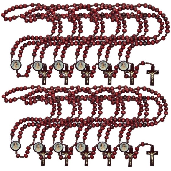 TE940156P12 - Terço N. Sra. Rosa Mística Madeira c/ 12un. - 37cm