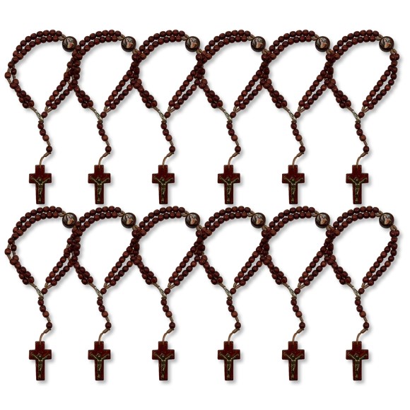 PU1541150P12 - Pulseira Terço Santa Terezinha das Rosas Madeira c/ 12un. - 22x1,8cm