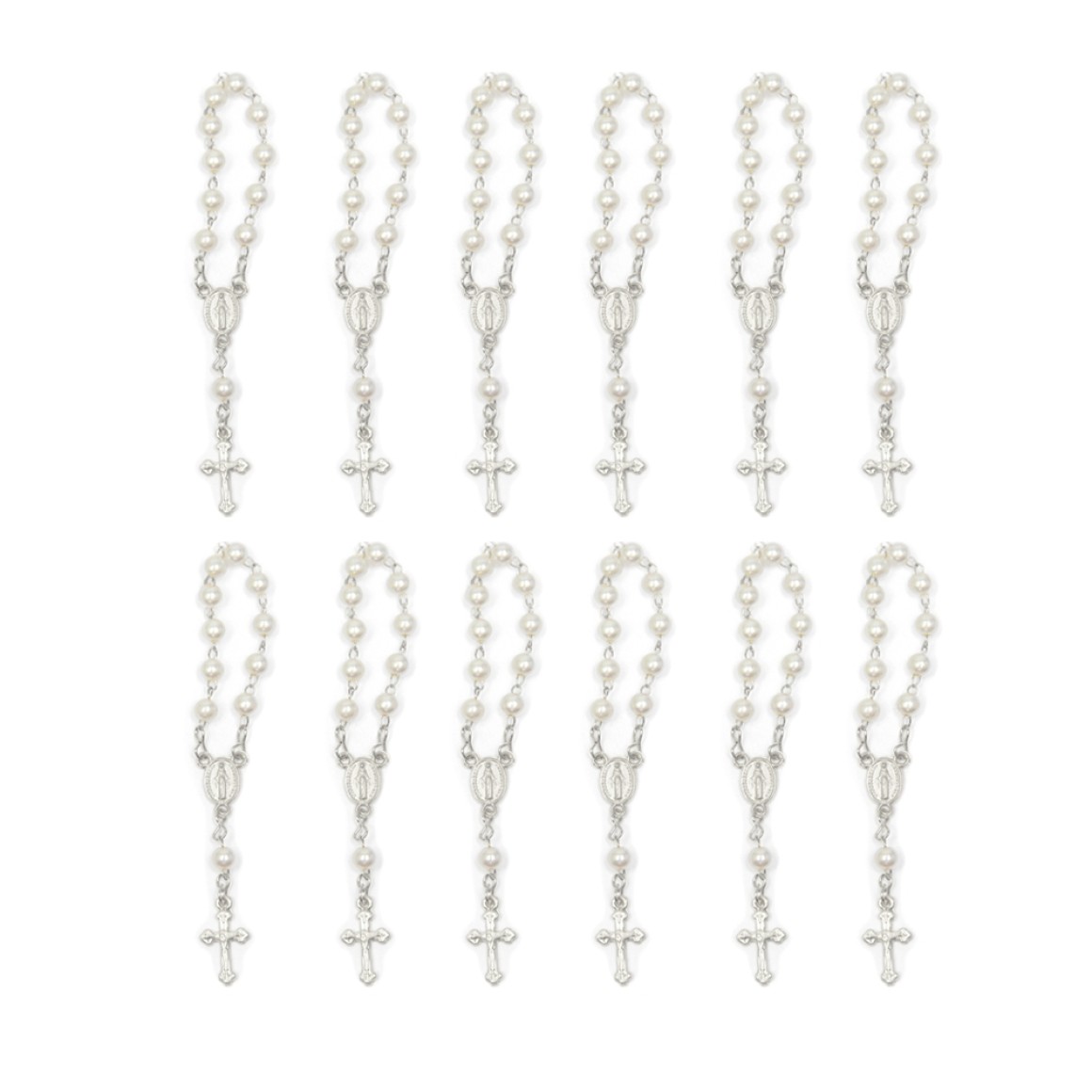 DZ1070002P12 - Dezena Pérola Branca c/12un. (Mini Terço) - 9,5x1cm