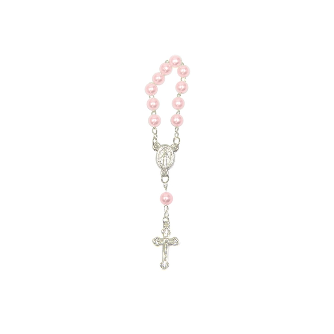 *Dezena Pérola Rosa c/12un. (Mini Terço) - 9,5x1cm .
