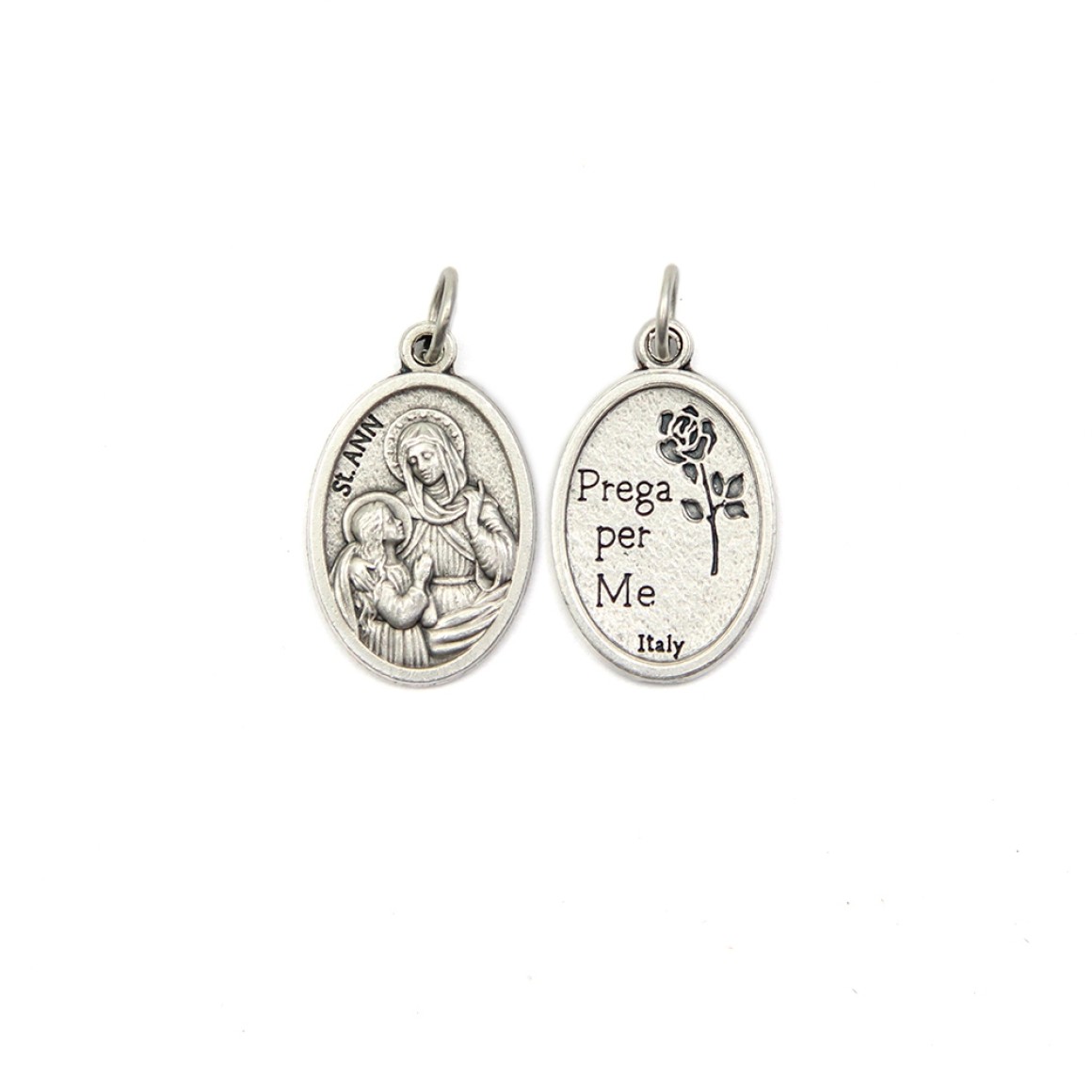 MD1180011P2 - Medalha Santa Ana Italiana Oval Prateada c/ 2un. - 2,5x1,7cm