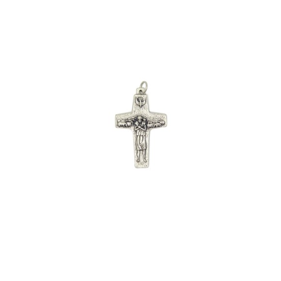 CZ73089 - Cruz Papa Francisco (Bom Pastor) Italiana Prateada - 4x2,5cm