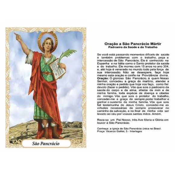 OG141445P100 - Oração São Pancrácio c/ 100un. - 9,5x6,5cm