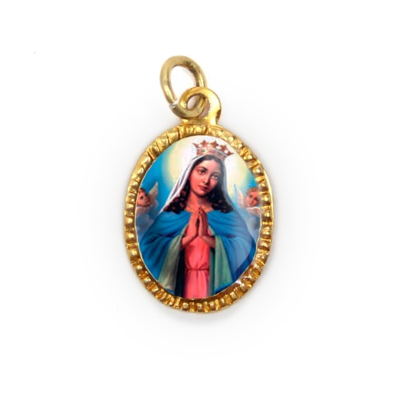 *Medalha de Alumínio Oval Dourada c/ 10un. N. Sra. Da Guia - 2X1,3cm.