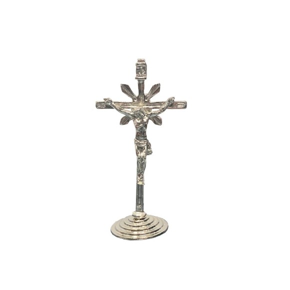 *Crucifixo de Mesa Raiado Metal Níquel - 9x4,5cm (619).