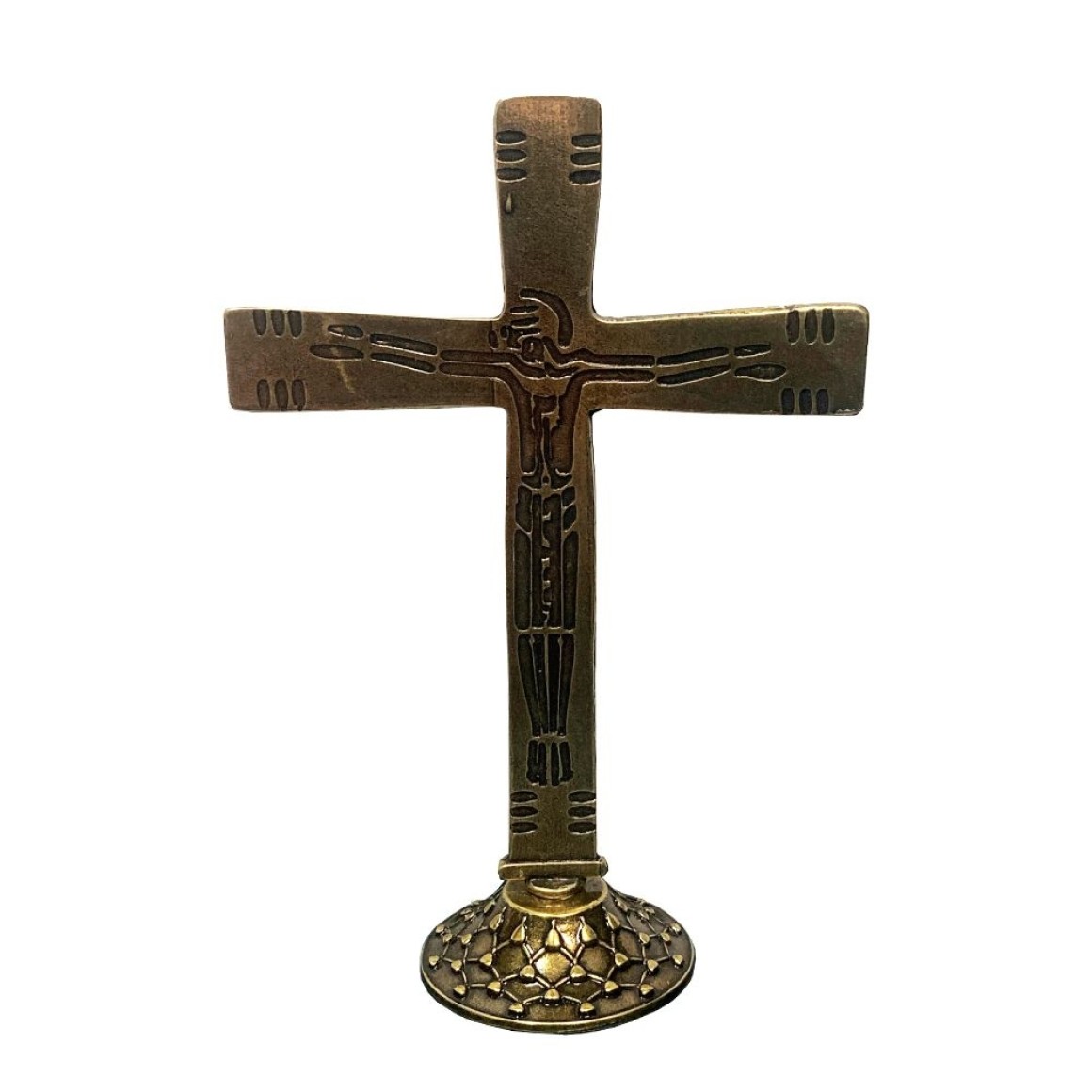 *Crucifixo de Mesa Cruz do Nada Metal Ouro Velho - 18x12,5cm (627).