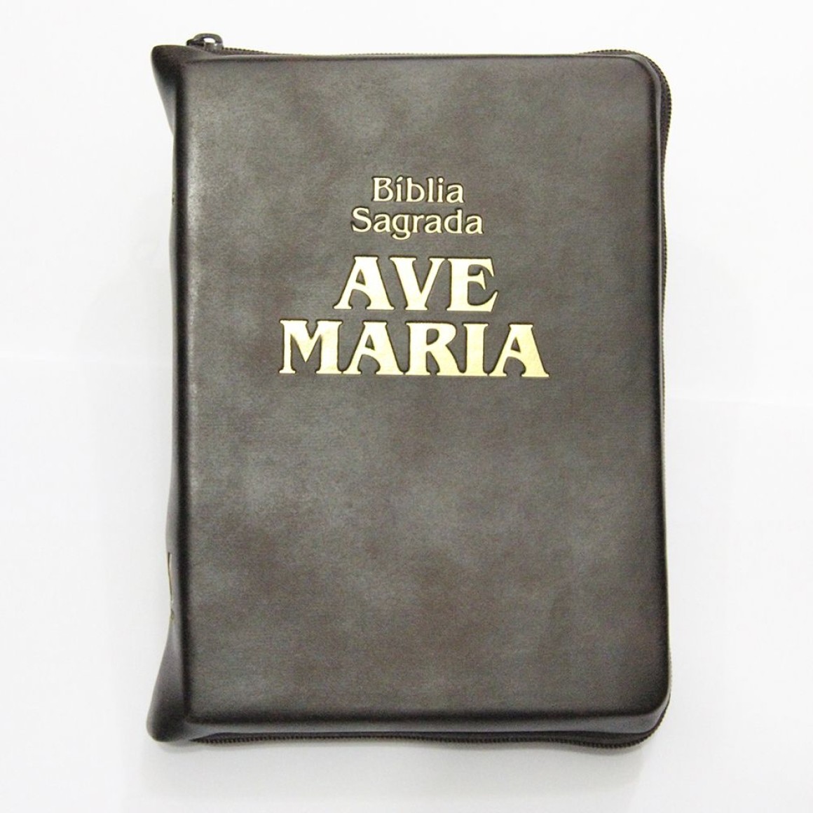 *Bíblia Sagrada Ave Maria Marrom c/ Ziper - 20x14,5cm.