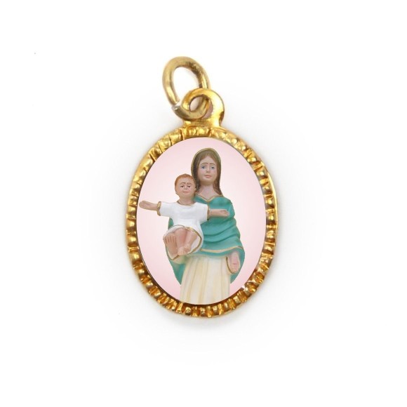 *Medalha de Alumínio Oval Dourada c/ 10un N. Sra. Do Sorriso - 2x1,3cm.