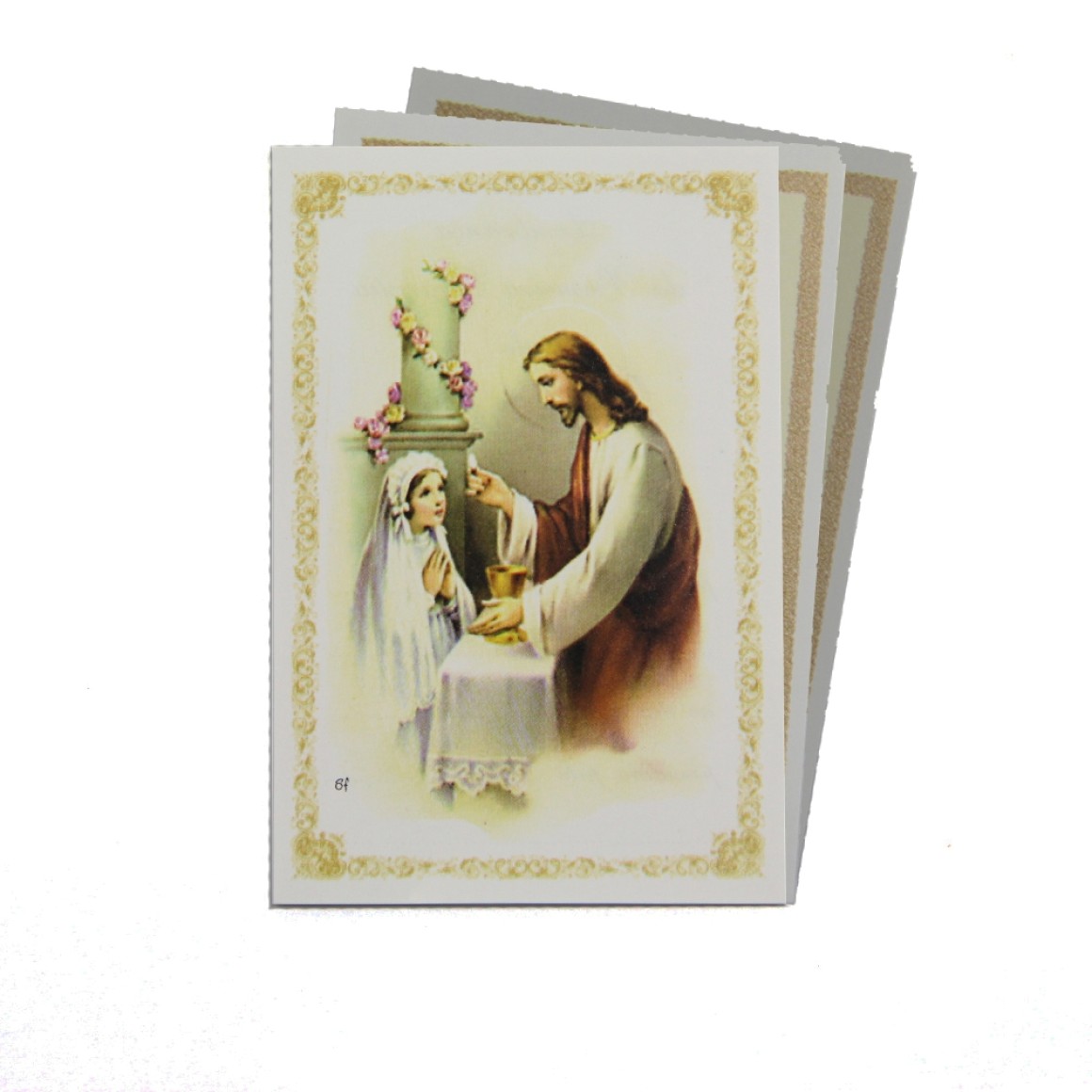 *Cartão Lembrança Primeira Eucaristia Menina c/ 50un. - 9,5x6,5cm.
