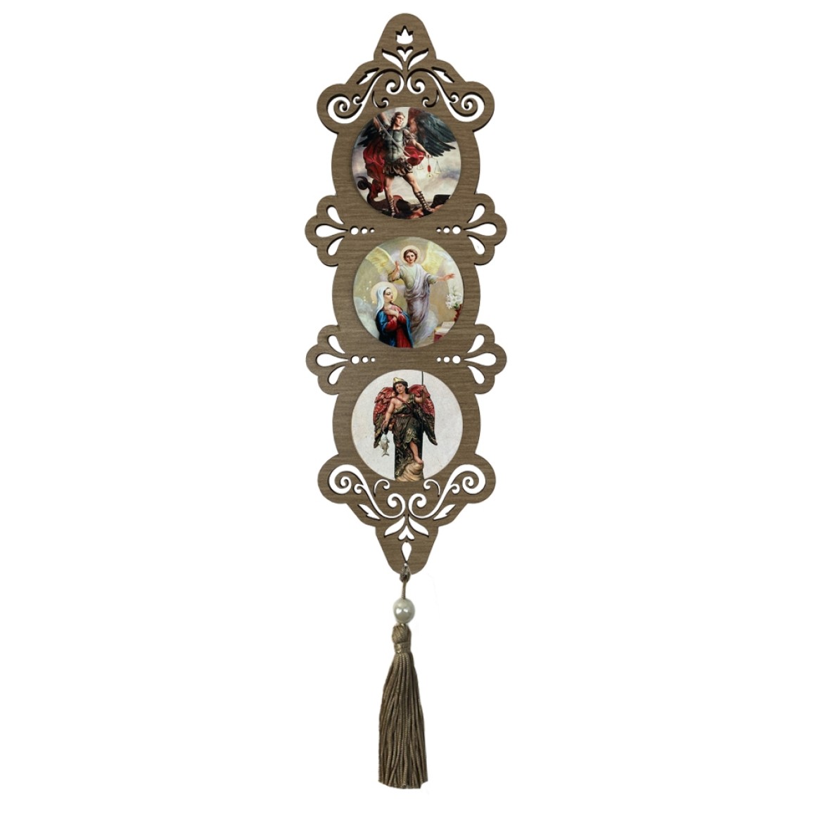 *Adorno Arcanjos MDF Amadeirado Resinado - 40x10,5cm.