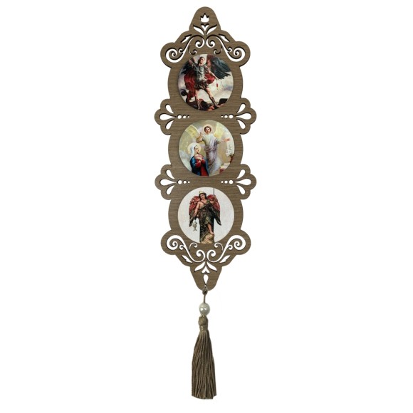 AO4102706 - Adorno Arcanjos MDF Amadeirado Resinado - 40x10,5cm