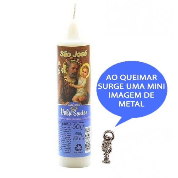 *Vela São José c/ Santo de Bolso - 14x3cm.