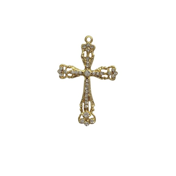 *Cruz Metal Dourada c/ Strass - 6,9x4,3cm.