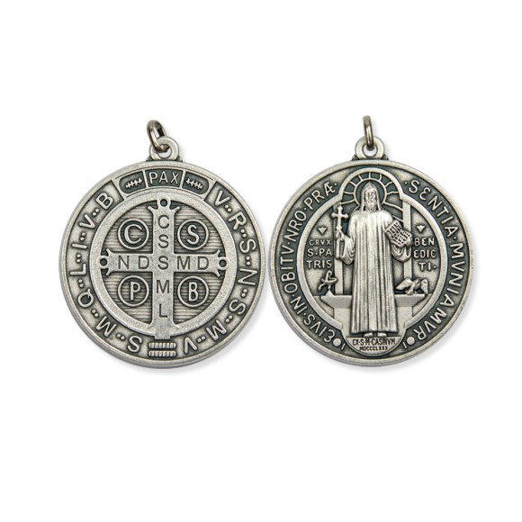 *Na frente da medalha são apresentados uma cruz e entre seus braços estão gravadas as letras C S P B, cujo significado é, do latim: Cruz Sancti Patris Benedicti – “Cruz do Santo Pai Bento”.